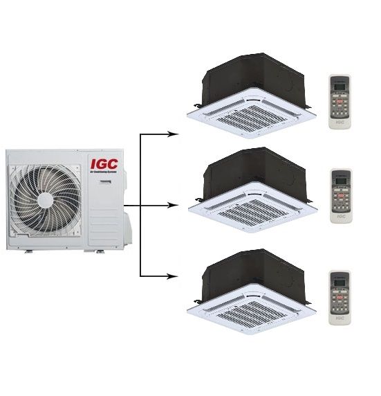 Мульти сплит-система IGC RAM3-M21UNH / RCI-M09NH + RCI-M09NH + RCI-M09NH на три помещения площадью до 25 м2 каждое. Каждый из блоков имеет функционал и настройки, совпадающие с такими же для обычных сплит систем. Таким образом отсутствует разница как в управлении блоками, так и в выполняемой ими работе по созданию комфортных условий.